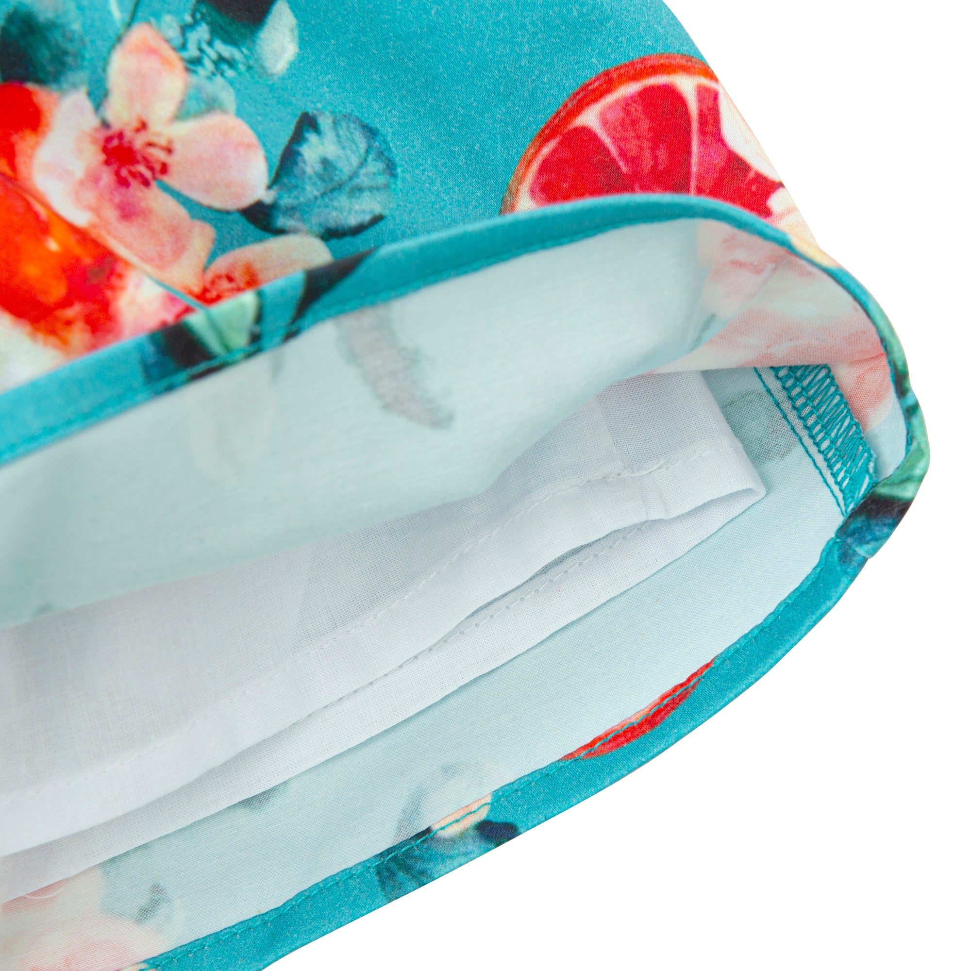 The Look: A stunning Mediterranean-inspired citrus and floral print on a rich teal background.