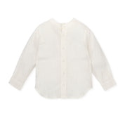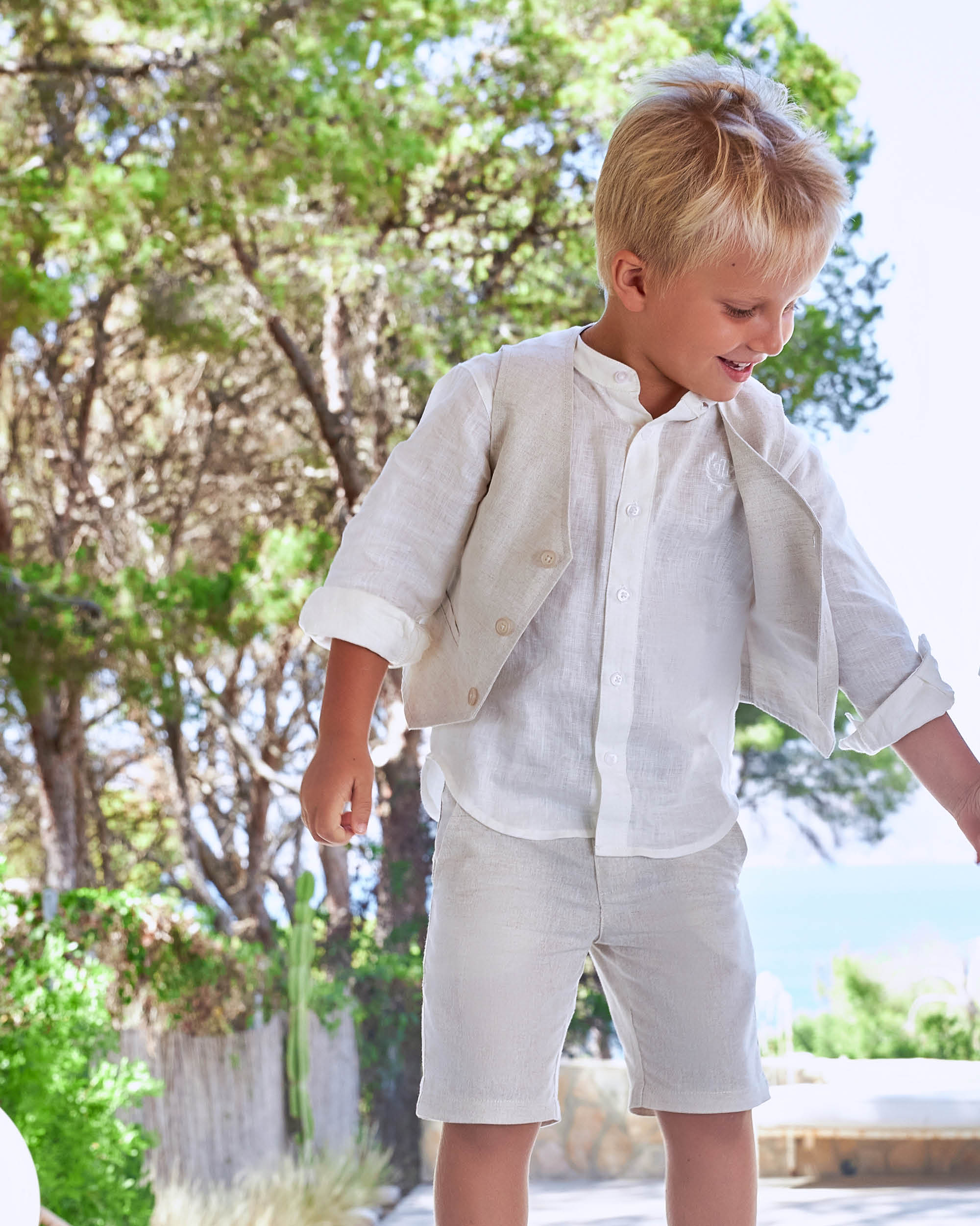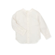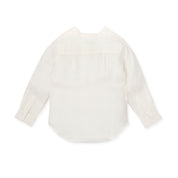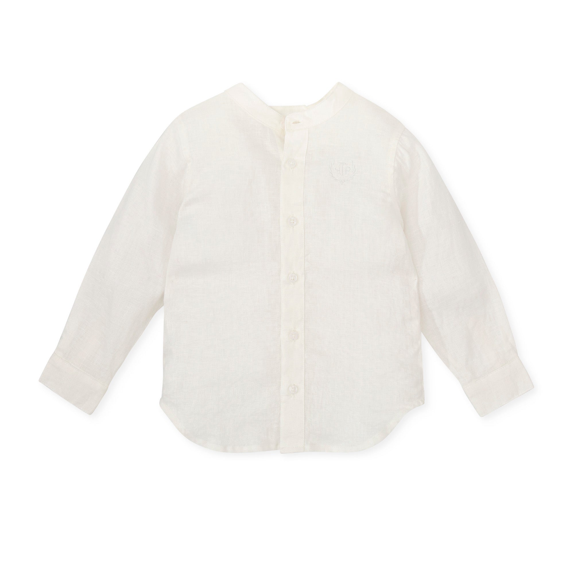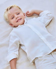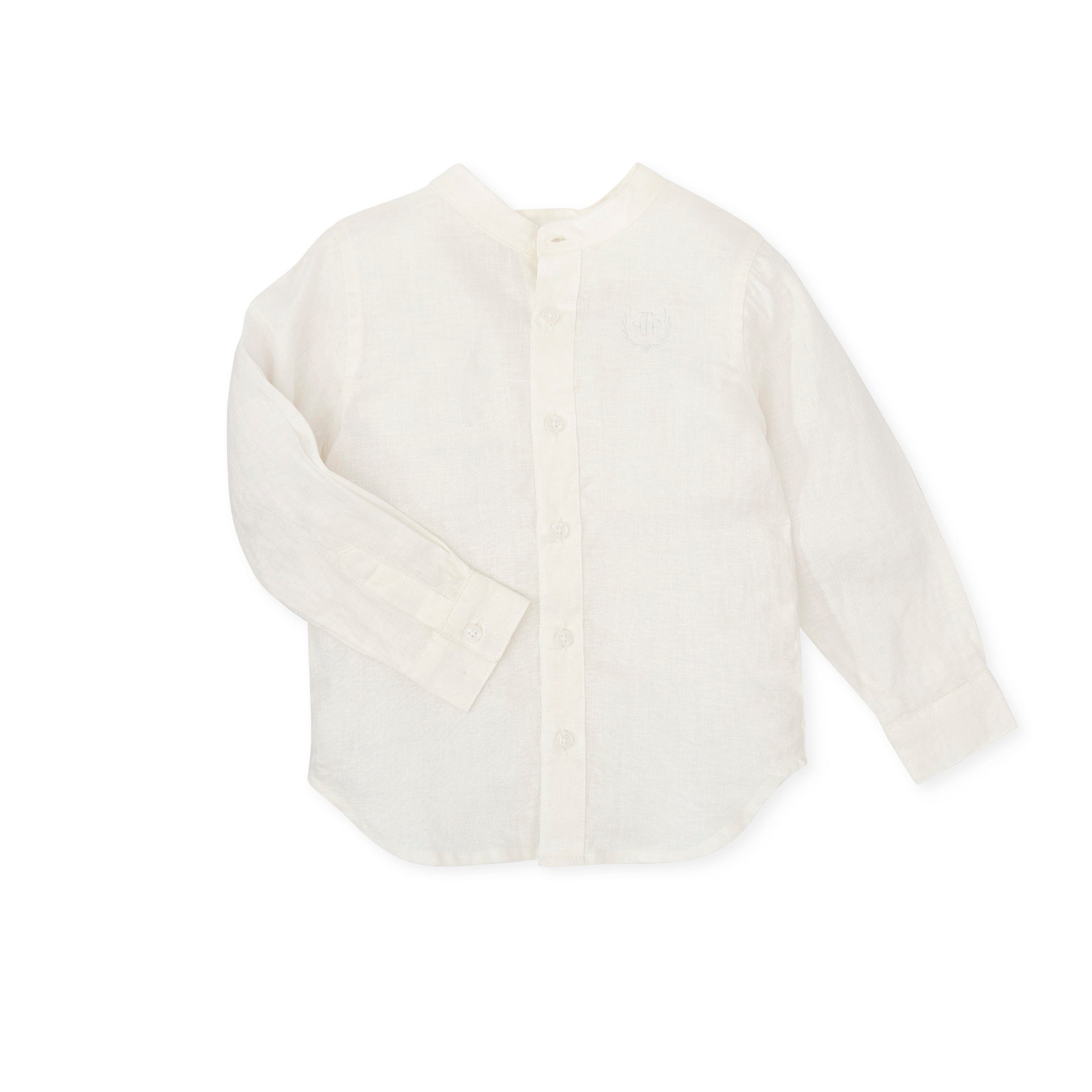 A timeless classic for your little one’s wardrobe, this long-sleeve linen shirt features a sharp Mandarin collar and a discreet embroidered logo detail. Available in crisp white, porcelain, and vibrant orange, it’s perfect for any occasion.